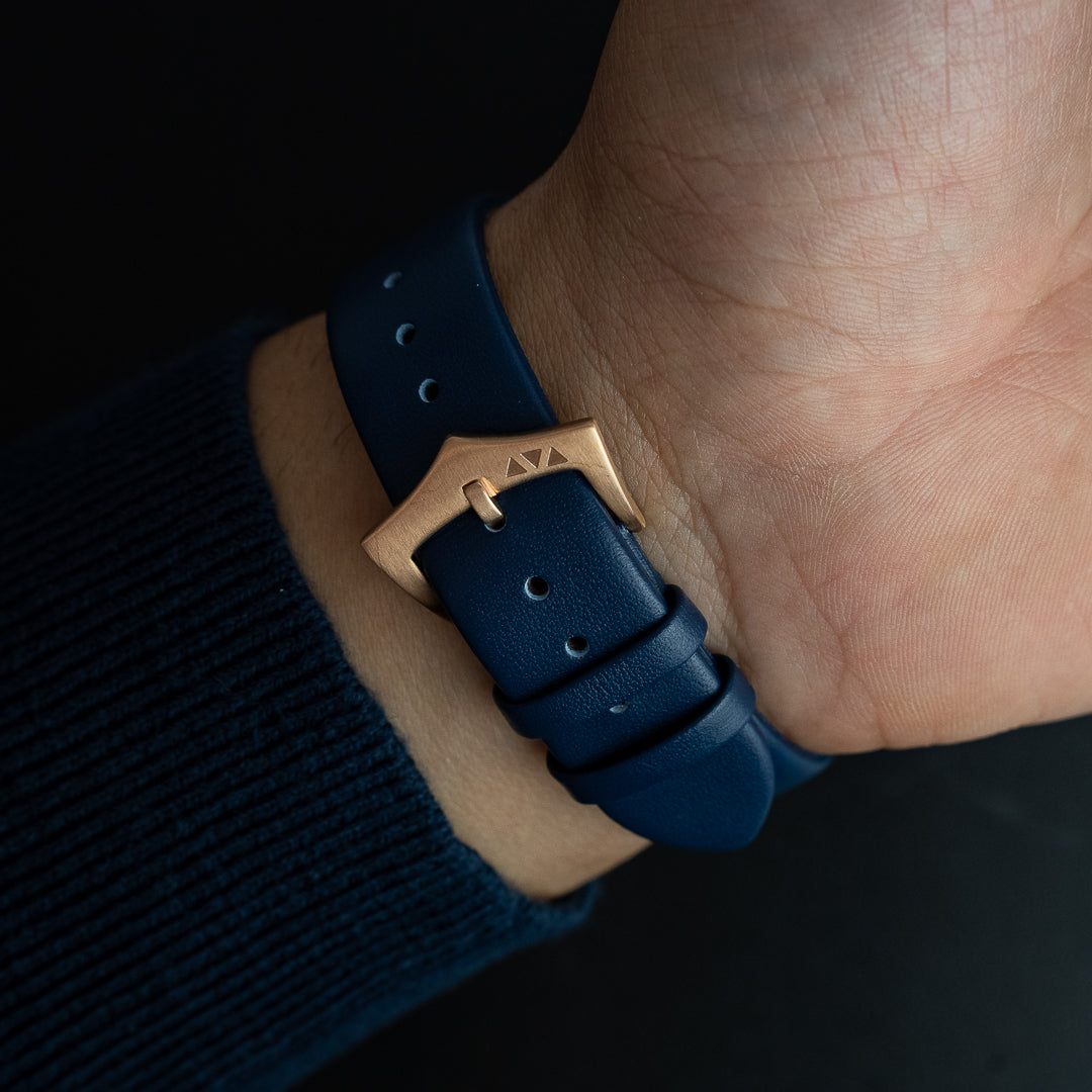 Nuestra nueva correa de piel auténtica con un estilo minimalista y versátil. Combínalo con modelos de 39 mm.